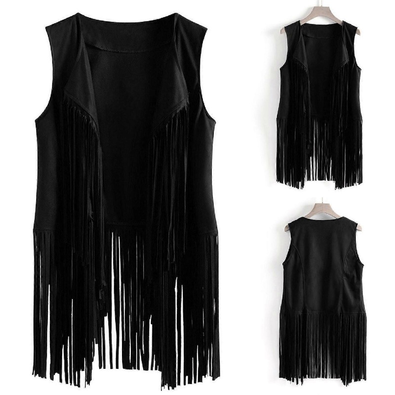 Women Vests Women Autumn Winter Suede Leather Ethnic Sleeveless Tassels Frill Waistcoat Vest