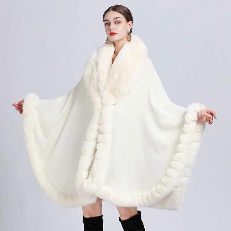 Fur Collar Poncho Faux Rabbit Fur Plaid Poncho Coat Women’s Cardigan Poncho Thickened texture can keep you warm effectively in cold winter